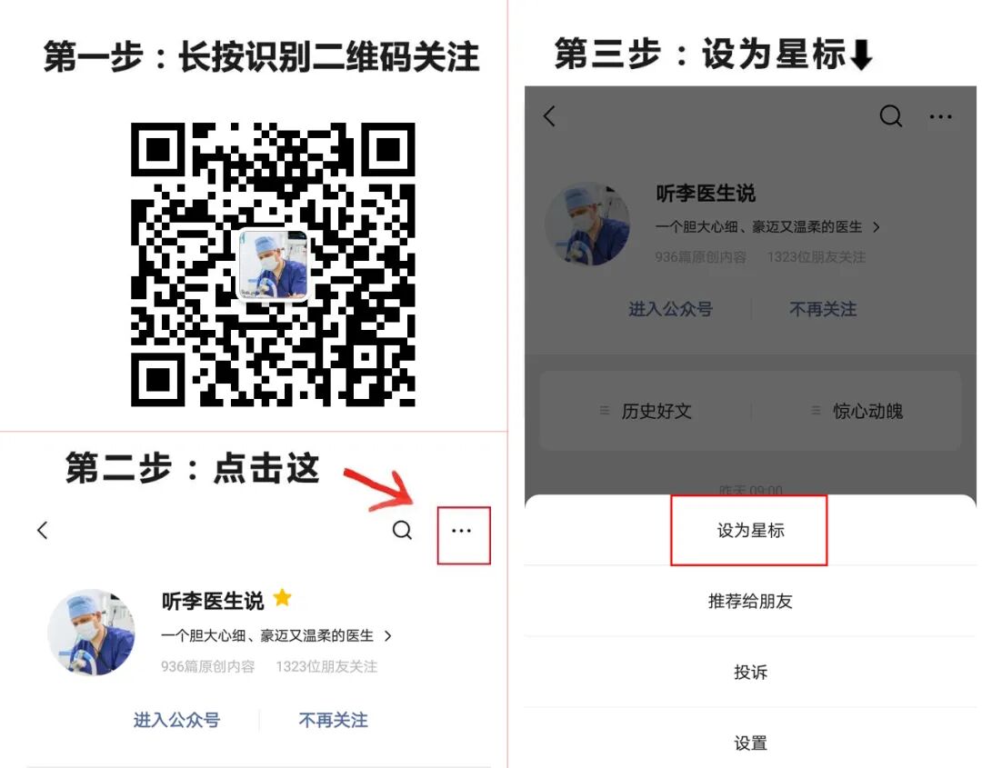 微信公众号最近改版!为了方便大家能够每天看到李医生的文章,希望大家动动手指,按照以下方法把听李医生说的公众号加个星标!