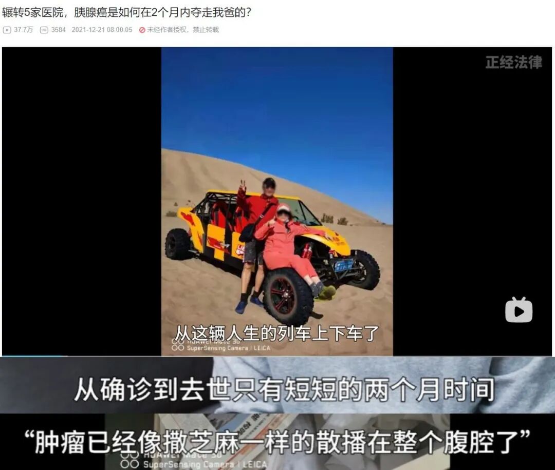 一位视频博主MAX正经法律曾分享了自己父亲的抗癌经历,从胰腺癌确诊到去世仅仅2个月!