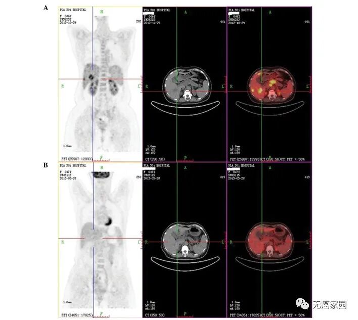 其中1例晚期胰腺癌患者,接受的是静脉回输的CAR-T治疗,治疗后全身的病灶,基本都实现了代谢活性完全消失。