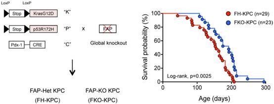 FAP缺陷的胰腺癌临床前小鼠模型的生存期延长(图片来源 JCI)