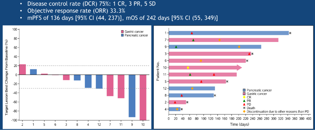 CAR-Claudin18.2 T 细胞治疗胃癌/胰腺癌的临床数据更新显示,靶向claudin18.2 CAR T细胞治疗12例转移性腺癌(胃癌7例,胰腺癌5例),未发生严重不良事件、治疗相关死亡或严重神经毒性。