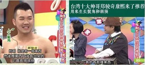 台湾小哥郑骏奇在节目里说,自己想变得更Man,把这个生发液涂在眉毛和鬓角的地方,结果发现也长出了小绒毛。