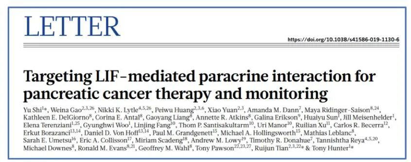 3: Targeting LIF-mediated paracrineinteraction for pancreatic cancer therapy and monitoring. Nature. 2019May;569(7754):131-135.