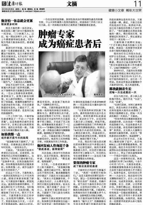 ③《健康时报》2019-05-28《肿瘤专家成为癌症患者后》