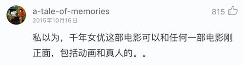 今敏调侃道:在我既非动画大师,作品也非漫画原作改编、继续制作原创作品非常困难的情况下,还连续做了两部原创动画电影,这果然是因为我的才能,不,人品......不,是因为幸运啊。