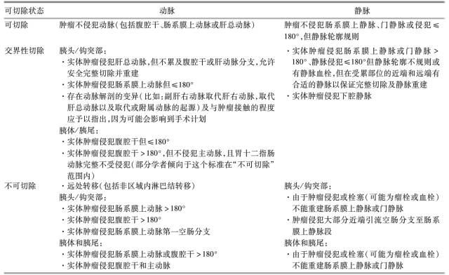 25. 胰腺癌可切除状态的定义标准(2016 NCCN)如下: