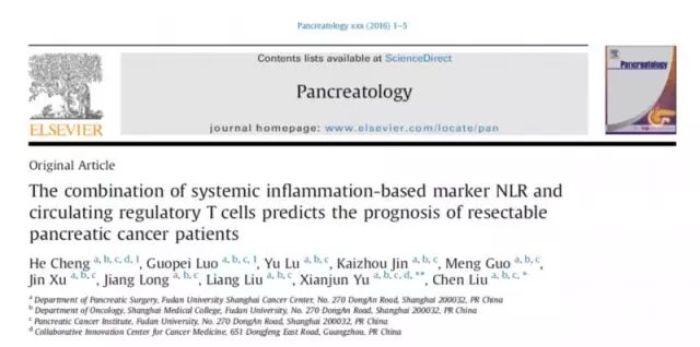 由复旦大学胰腺肿瘤研究所/复旦大学附属肿瘤医院胰腺外科虞先濬教授领衔的研究团队探索总结胰腺癌术前炎症和免疫状态和胰腺癌术后预后的进一步关系,相关论文发表于国际著名学术杂志《Pancreatology》。