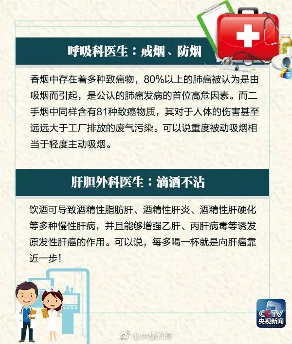 如何防癌、抗癌?各个科室的医生都有最重要的医嘱。每个人都应该认真了解!