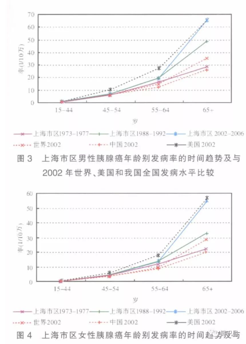 蔡鸿宇透露,根据近年来收治病人的情况来看,胰腺癌确实存在年轻化的趋势。据其出具的图表分析显示,上海市区2002-2006年的胰腺癌发病率与1973-1977年的数据相比,在45岁以后存在明显的年轻化。