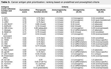 13. Cheever, M.A., et al., The prioritization of cancer antigens: a national cancer institute pilot project for the acceleration of translational research. Clin Cancer Res, 2009. 15(17): p. 5323-37.