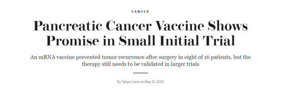2.Pancreatic Cancer Vaccine Shows Promise in Small Initial Trial.Scientific American