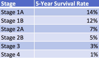胰腺癌的5年生存率很低。目前,美国已将胰腺癌的5年生存率从20年前的4%提升至12%,未来这个数字还会进一步扩大,美国的医护人员还定了一个小目标,计划到2030年将这一数字提升到20%。