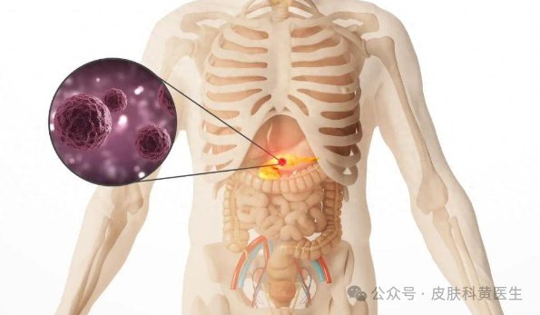 皮肤和眼睛出现黄疸是胰腺癌中常见且明显的症状之一。这种情况通常发生在胰腺头部的肿瘤压迫胆管,阻碍了胆汁正常流向肠道,导致其逆流至血液中。