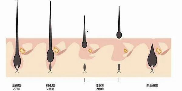咱们都知道头发的生长有生命周期,分为生长期、退行期和休止期,约有80%处于生长期,20%处于休止期和退行期。