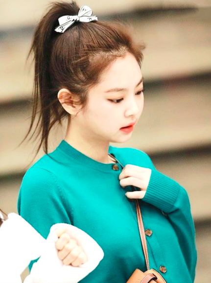 Blackpink的金智妮也是少有的颅顶高,扎高马尾的时候整个头骨都十分立体,并且有向上拉的延伸感,更有精气神儿。(害,发姐柠檬精上身)而颅顶低的人扎马尾就会有一种扁塌感,还显得脸大。