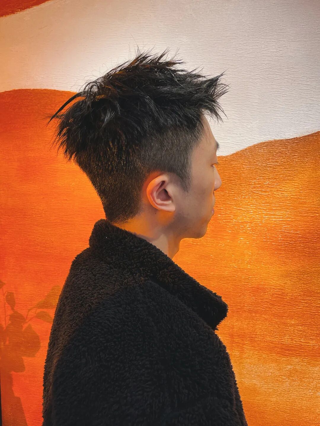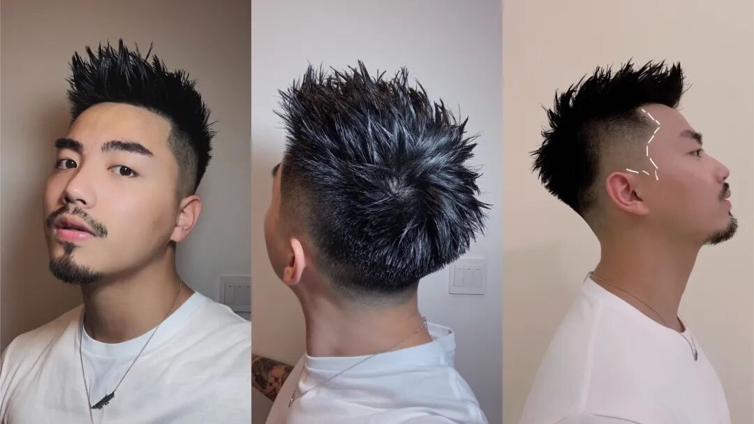 飞机头的特征就是两侧后面剪短,头顶刘海保留长度,往头顶中间支棱起来,这种发型比较动感个性,比较适合发质硬的男生。
