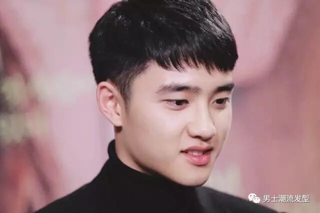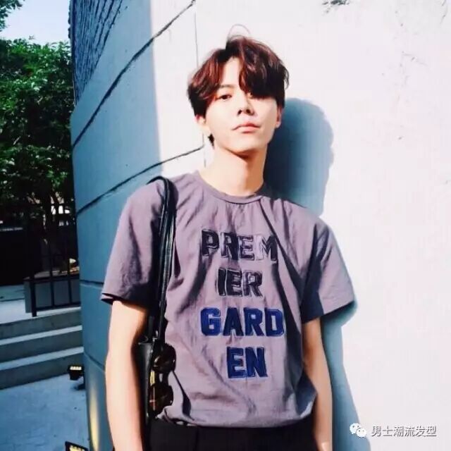 短刘海能遮住额头顶点的弧度,两边剪得短一点,刘海不要是一刀切,驾驭不住会很傻气,可以是类似于下图这种小锯齿形的,很显精神,也清爽。长刘海长度到眼睛上面,可以烫出适当的卷度,更蓬松自然,毕竟发际线高星人头发也不多,贴着头皮就尴尬了。比较浪漫慵懒的一款发型,很适合长脸的男生。