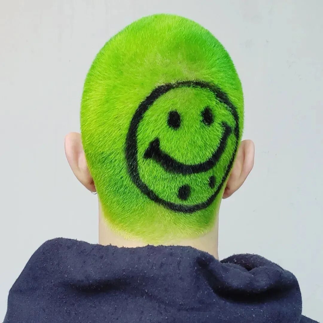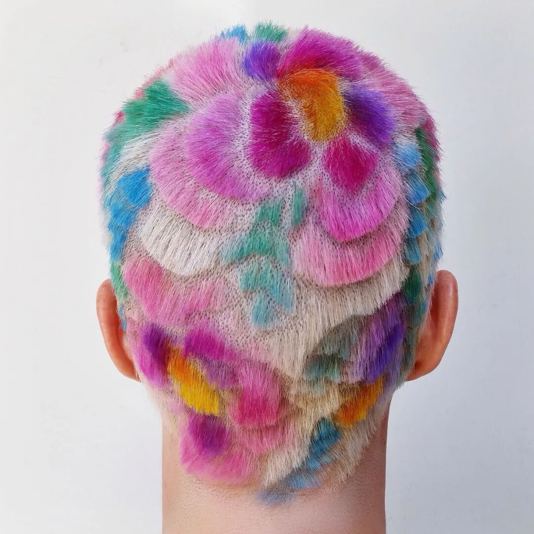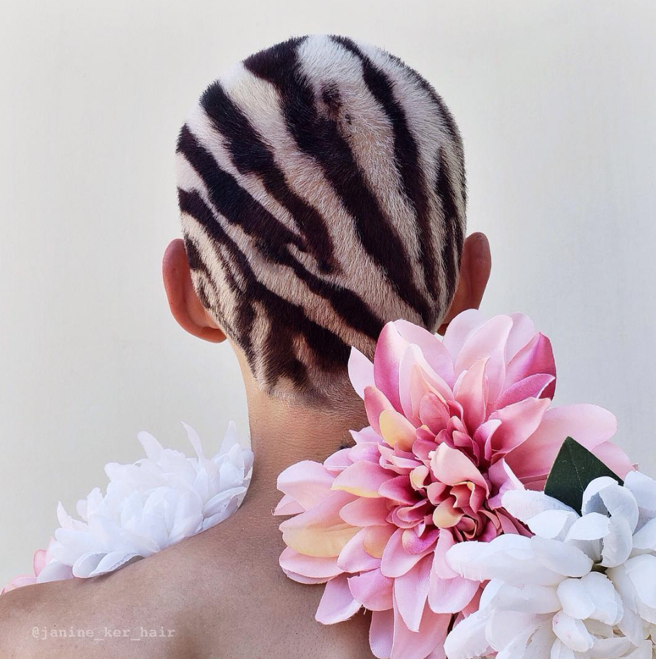 由艺术家转型为发型造型师的 Janine Ker 以她色彩斑斓的圆寸发型艺术闻名。