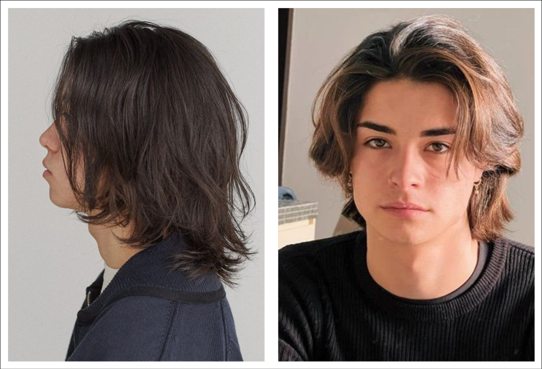 露额头的齐肩长发适合菱形脸、长脸、瓜子脸的男生,这种长度的头发可以选择自然披发、背头、或是半扎发,带有自然的卷度而保留整体的柔顺感,能更好地营造出成熟氛围。