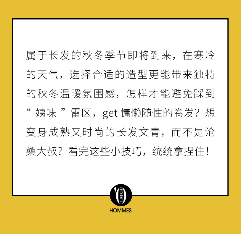 除了各种卷发,不烫发,保持柔顺的长发也是不错的选择。长发男生可以选择散发或扎发,扎发比较适合过耳或过肩的头发长度,带有一丝独特的古典气质。