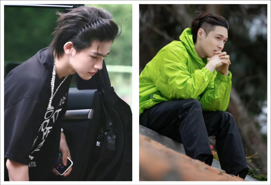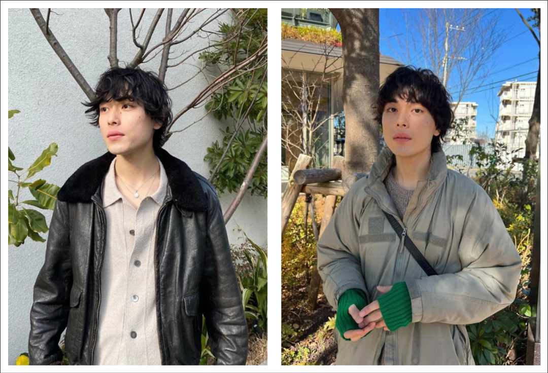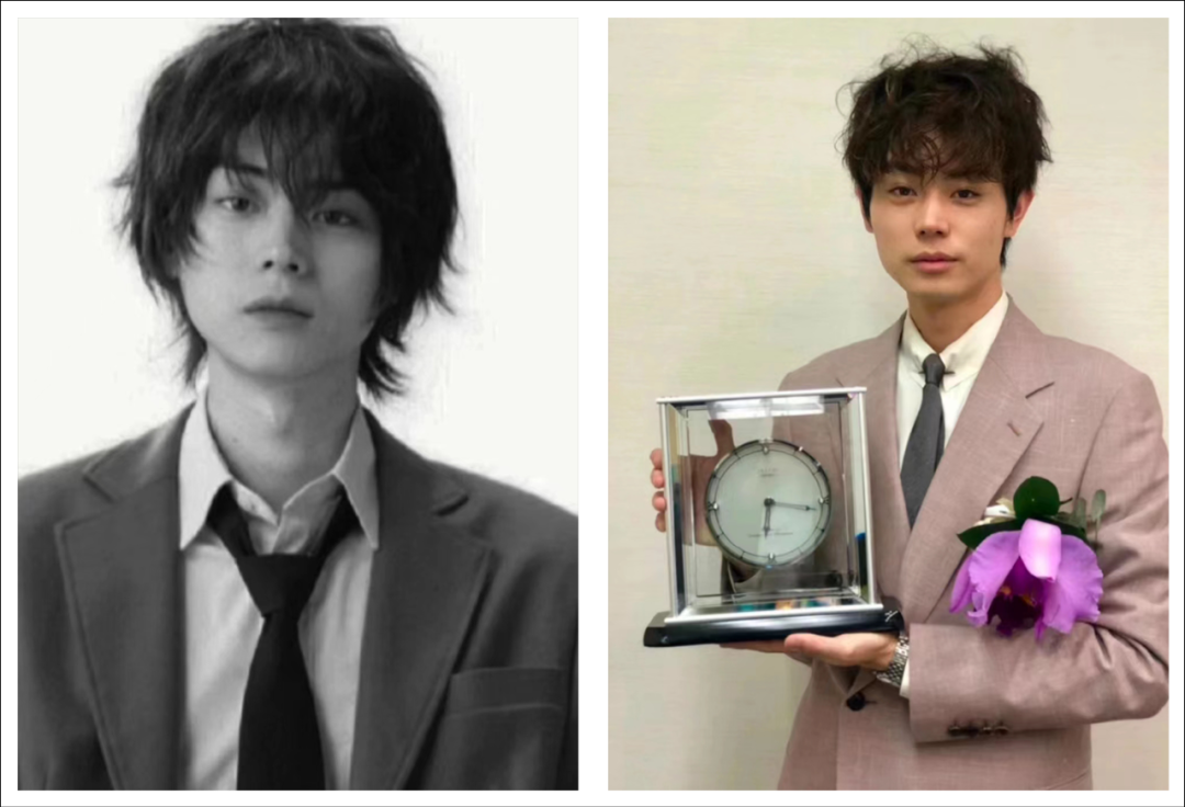 相比其他日系感卷发,菅田将晖的这两个造型就不太适合他,如果发型上窄下宽,会在视觉上显得脸更宽,少了刘海,也少了一些少年感。