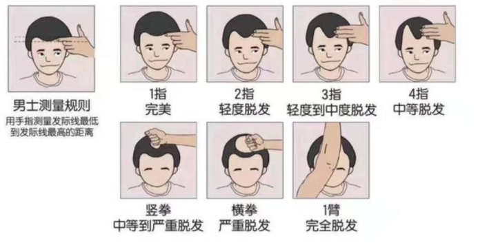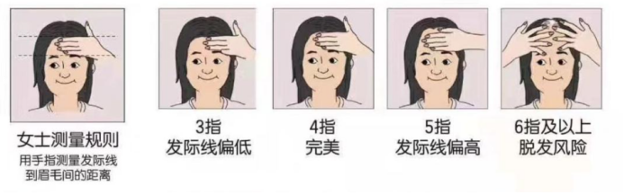 而网上流传着一份神秘的江湖秘籍——单手测发际线大法!可以简单有趣的测试一下我们的发际线是否偏高, 来一起测试下吧:
