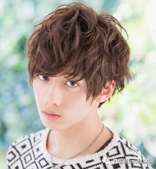 短烫发时髦又动感,眉上刘海设计很适合发际线高的男生,呈现出圆弧形,穿上白色衣服显出青春气息。