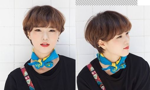 然后是一款短发齐刘海,这一款蘑菇头就很不错。厚重而卷曲的齐刘海让人忽略发际线,两侧头发分别撩至耳后,既清爽利落又让脸型在视觉上看起来更尖。
