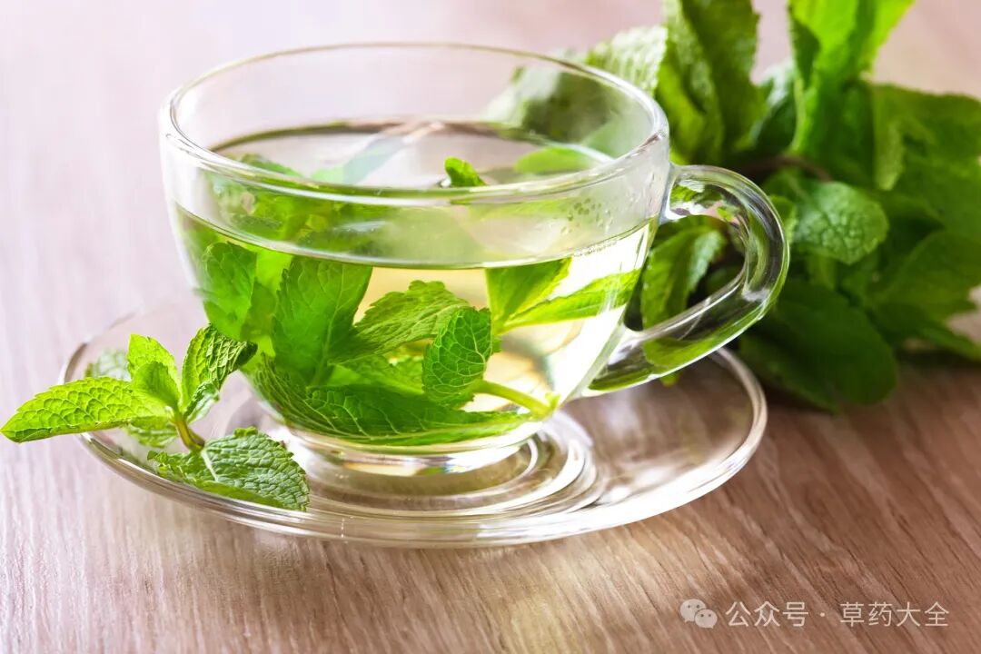 利咽之最 —— 薄荷:薄荷辛凉,气味芳香,归肺、肝经。其含有的挥发油,如薄荷醇、薄荷酮等,能疏散风热,清利咽喉。对于风热上攻所致的咽喉肿痛、声音嘶哑、咽喉干痒等症状有很好的疗效。它可通过辛散之性,使风热之邪从表而解,同时能减轻咽喉局部的炎症反应,缓解不适。还能清利头目、透疹止痒、疏肝行气。《新修本草》中记载 主贼风伤寒,发汗,恶气心腹胀满,霍乱,宿食不消,下气,其中清利咽喉的作用在临床应用中颇为广泛,常与桔梗、牛蒡子等配伍使用。