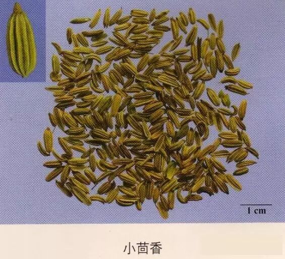 小茴香:背面有纵棱5条,横切面略呈五边形。