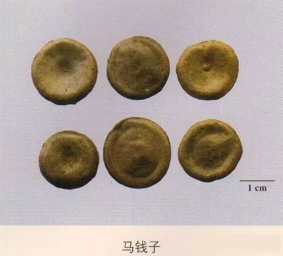 马钱子:表面自中间向四周呈辐射状排列,底面中心有突起的圆点状种脐。