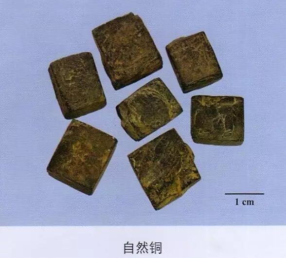 自然铜:具条纹,条痕绿黑色或棕红色;断面黄白色,有金属光泽。