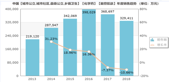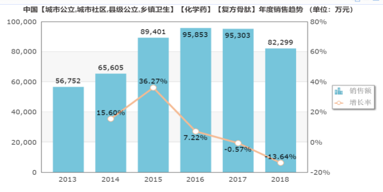 而复方骨肽也有着相似的情况。根据米内网数据,复方骨肽2018年的市场销售额为8.2亿,市场增长率为-13.64%,其市场同样也是从2017年开始出现负增长的情况。