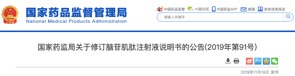 公告要求,所有脑苷肌肽注射液、复方骨肽注射剂的生产企业均应依据《药品注册管理办法》等有关规定,按照相对应的说明书修订要求,提出修订说明书的补充申请,于2020年1月8日前报省级药品监管部门备案。