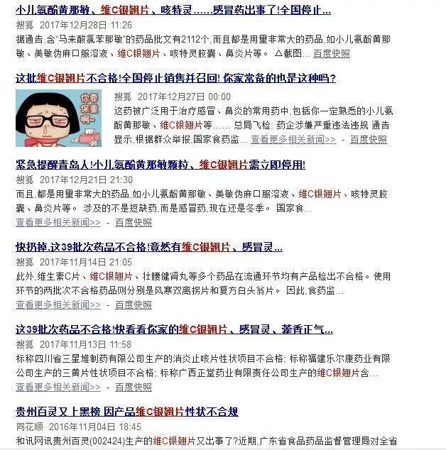 在质量检测中,维C银翘片出现的问题也层出不穷: