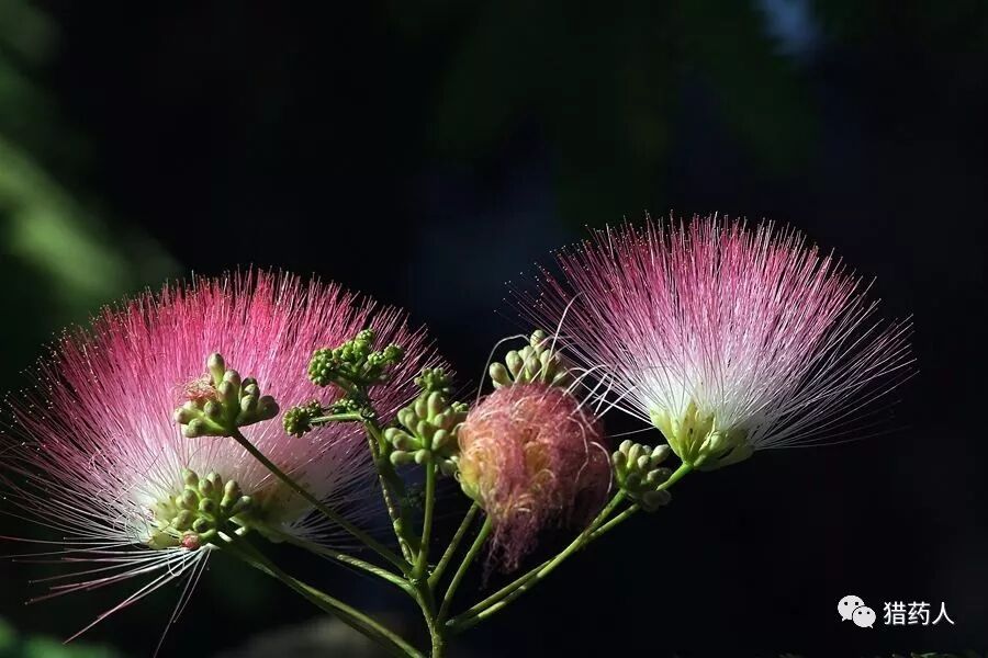 ·【药用部位】豆科植物合欢Albizia julibrissinDurazz.的初开放的花序或花蕾。前者习称合欢花,后者习称合欢米。