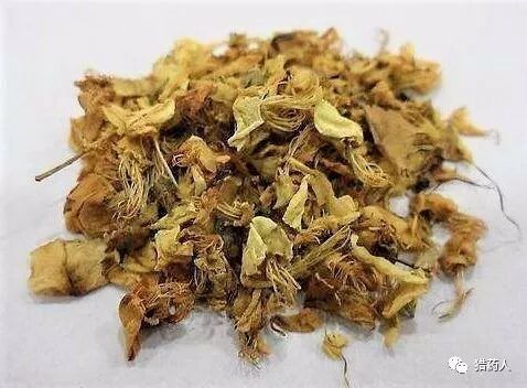 ·【采收加工】4~6月择晴天采摘花蕾或初开放的花,除去花柄及蒂,用文火迅速烘干或阴干。烘时宜将花摊成薄层,花冠向下,使其最先干燥,然后翻转再烘至干。