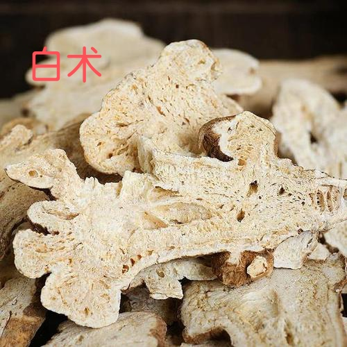 白术可以补脾,助脾气往上升。大家知道,白术还有一个兄弟,叫苍术,它们两个有什么区别呢?从外观上来看,白术质地细腻,苍术更粗糙些。从性子上来讲,白术比较沉稳,偏于补。苍术性子要冲一点,主要是燥湿。
