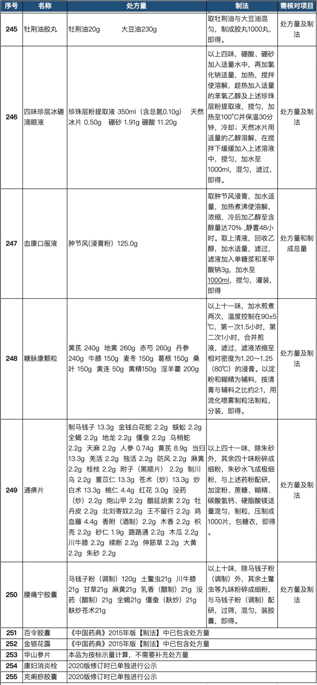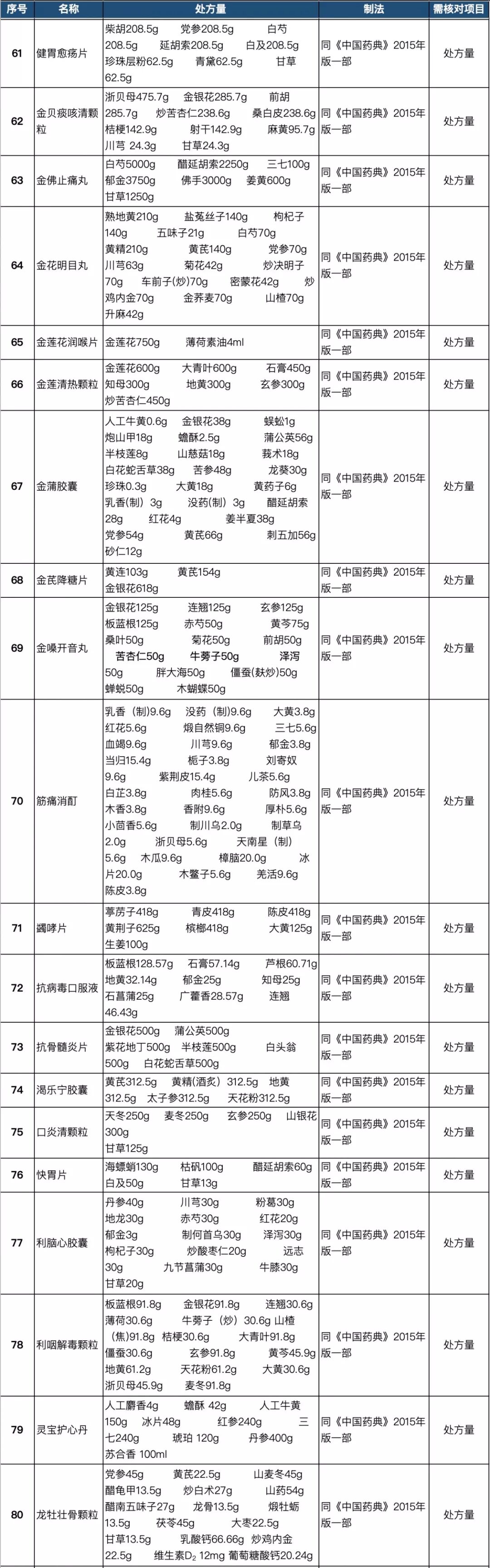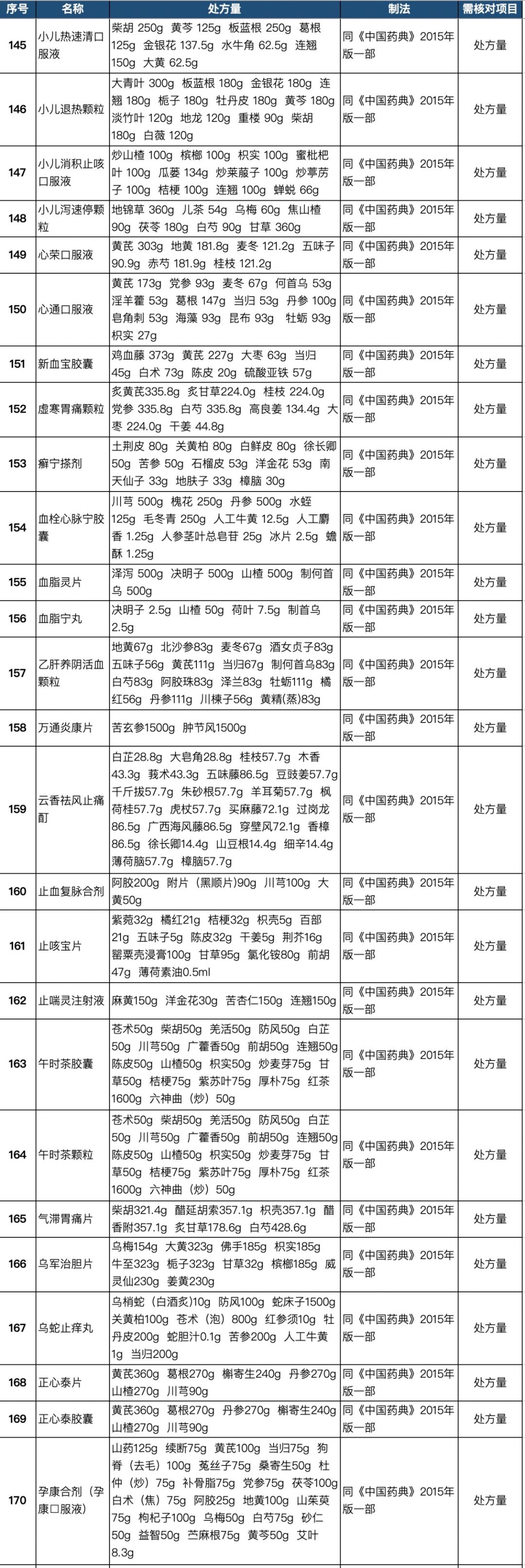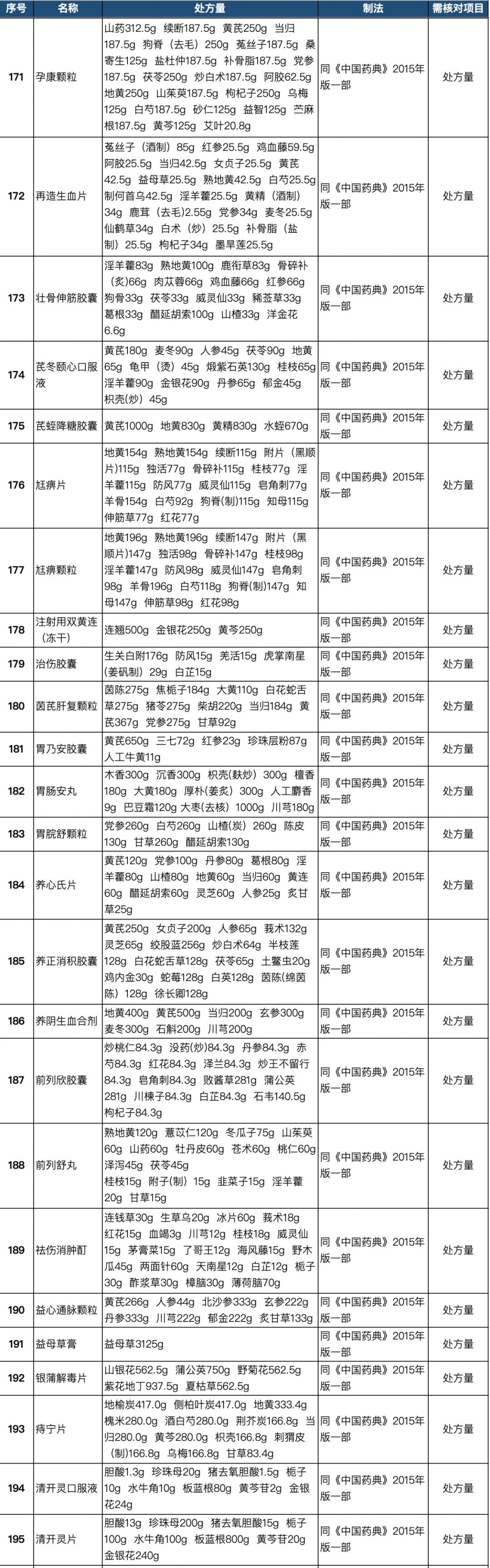 255个中成药处方药物组成以及药量
