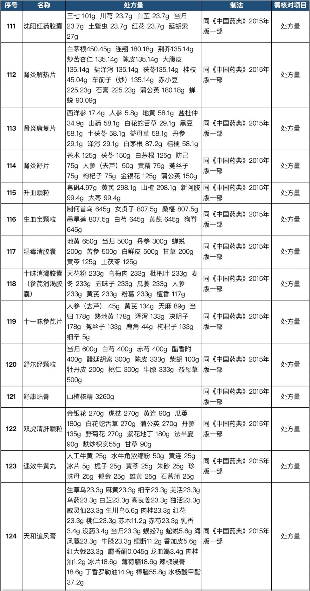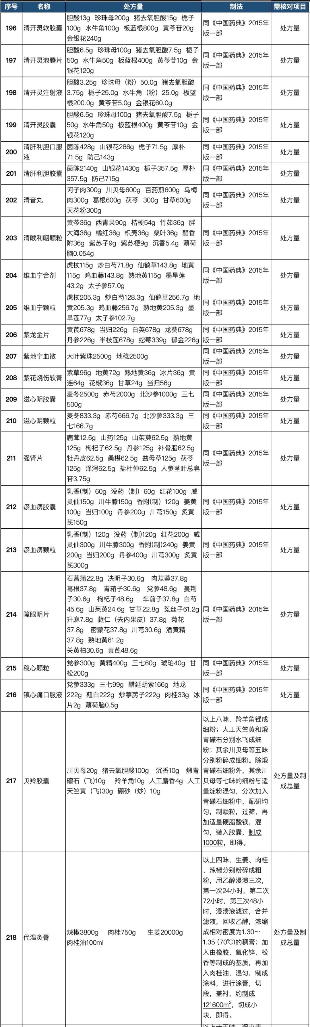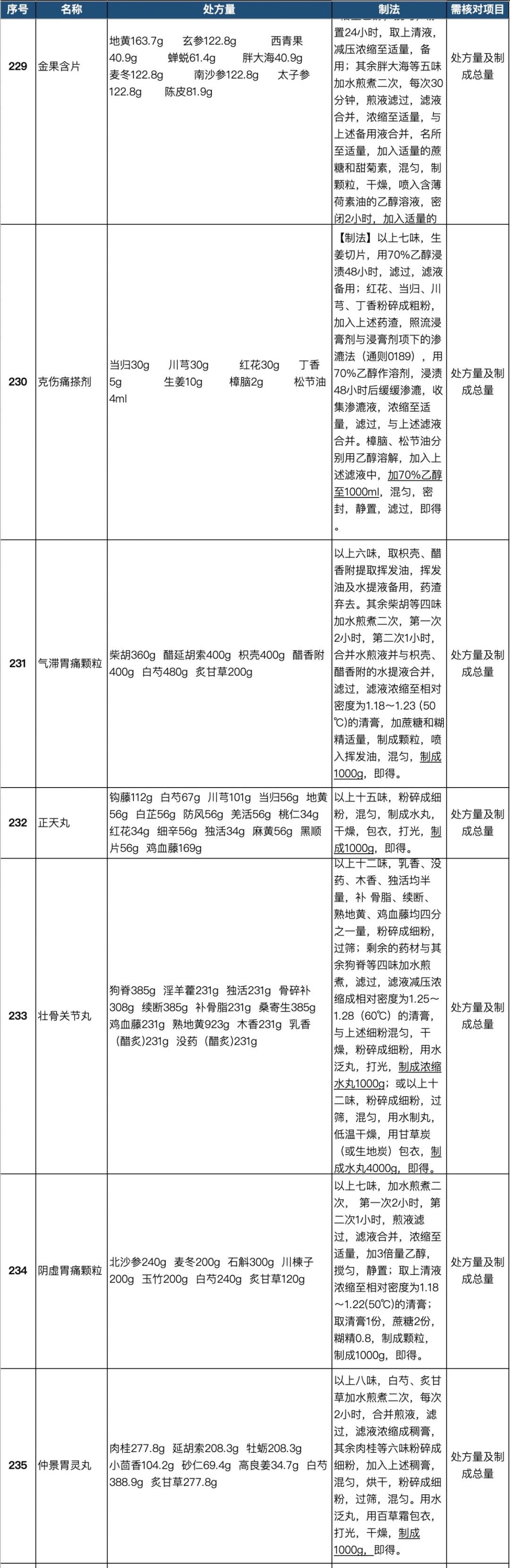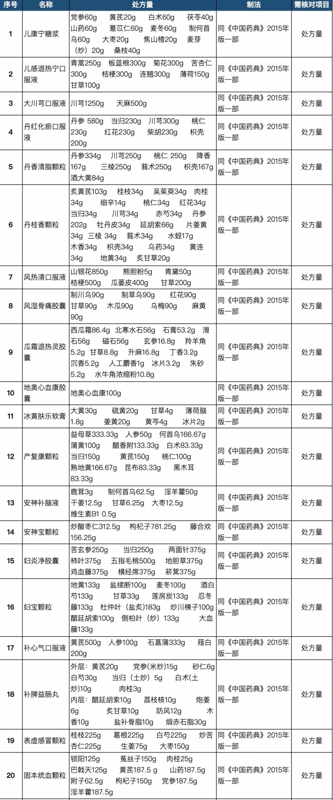 255个中成药处方药物组成以及药量