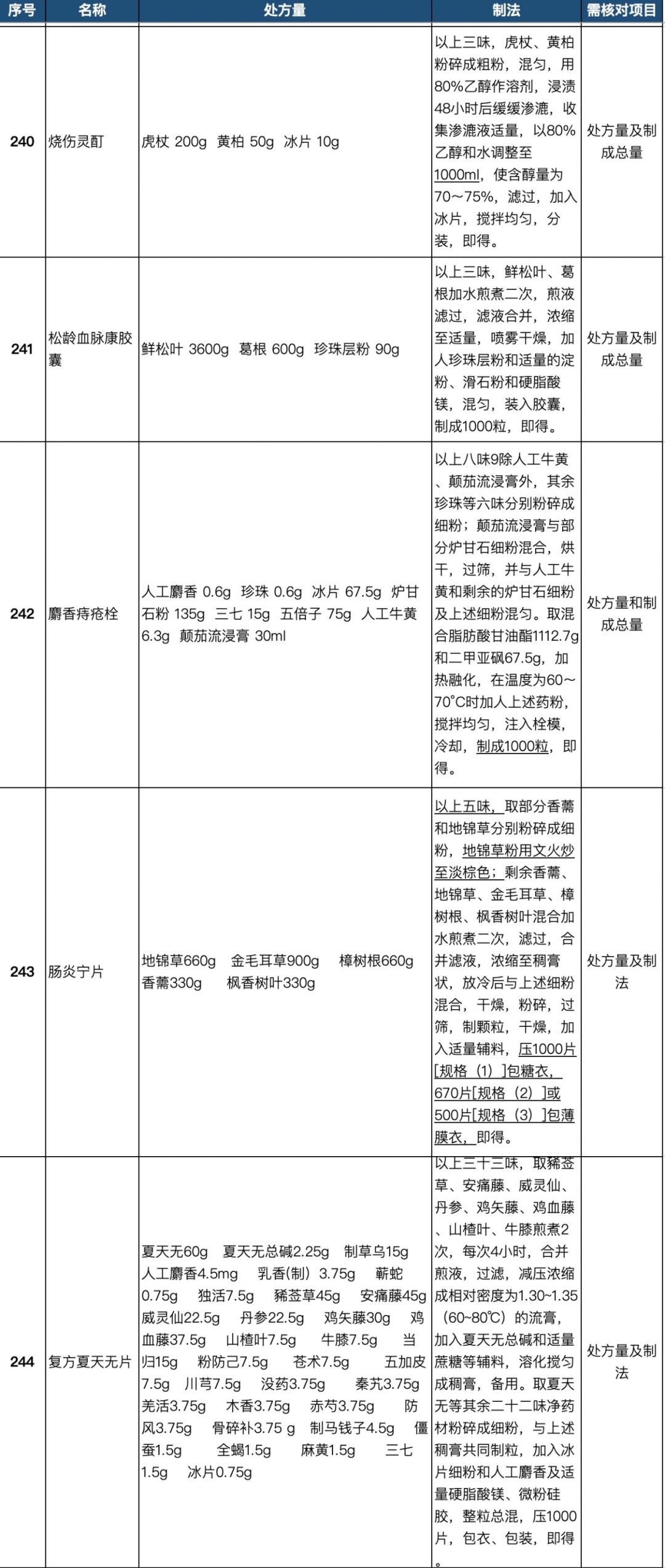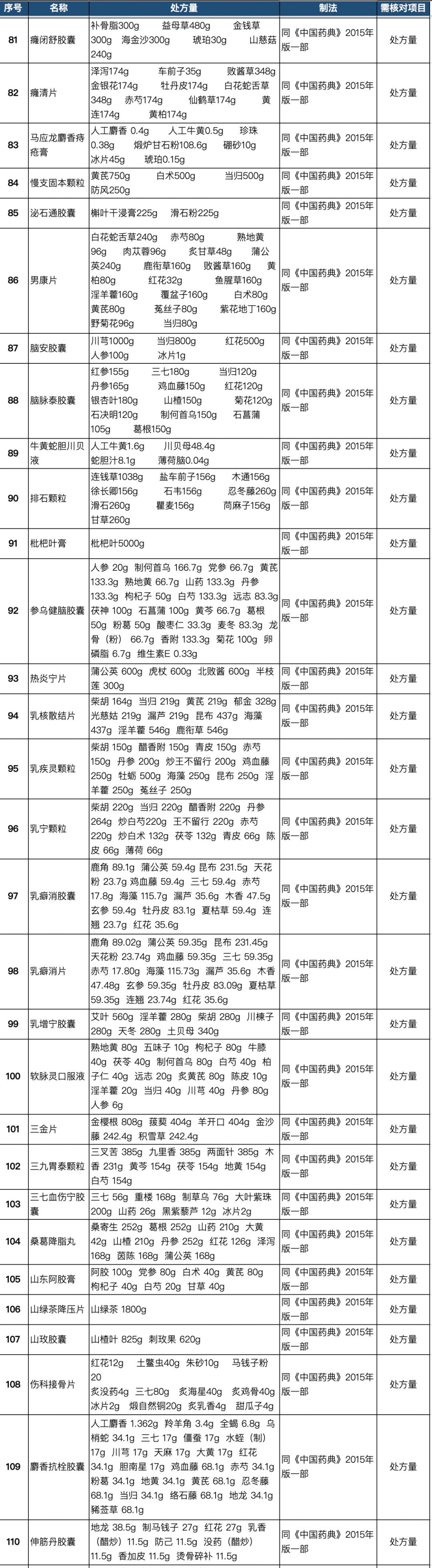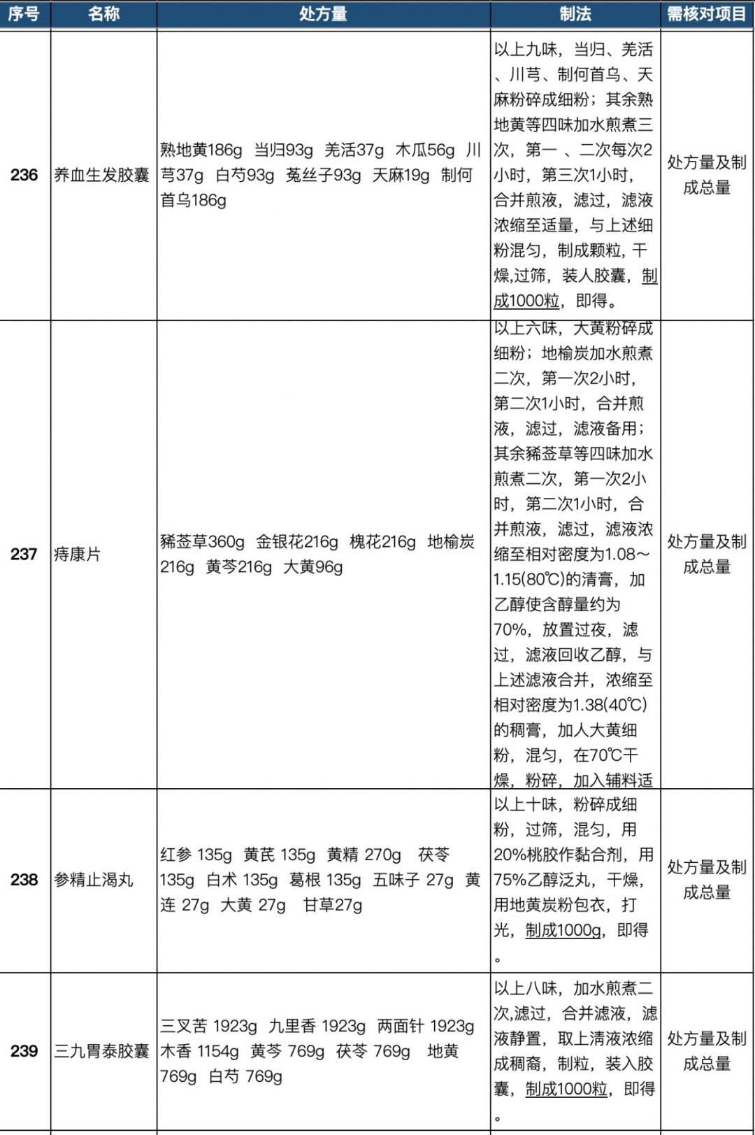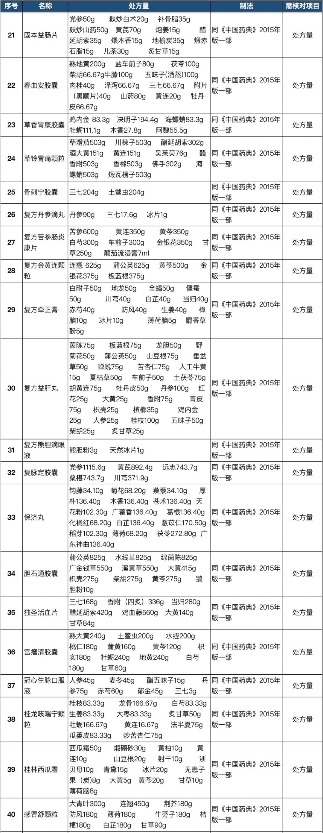 255个中成药处方药物组成以及药量