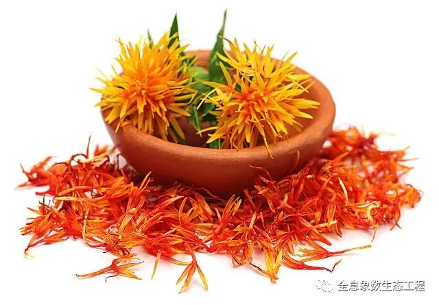 红花中含有一种叫做花酸的物质,这种物质具有降低人体胆固醇含量以及增加脂肪代谢的作用,可以抑制体内脂肪的合成量,西红花搭配山楂、草决明以及泽泻等药材一起同用可以起到预防脂肪肝的效果。
