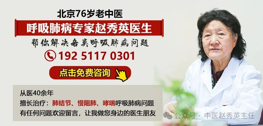 我是呼吸肺病科老中医赵秀英,专攻呼吸肺病问题40余年,如果你或者家人有肺结节,肺癌,慢阻肺,哮喘,间质性肺炎等问题,需要指导用药或者想让我帮你看看报告,都可以和我说说,让我给你一些正确的建议和方法。