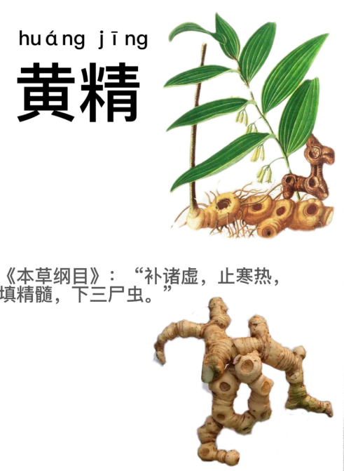 黄精主要入脾和肾经,具有补气、养阴、健脾和益肾的效果,其药性甘缓平和,能够增强脾肾的生理功能,补充后天之本,从而滋养先天之本。