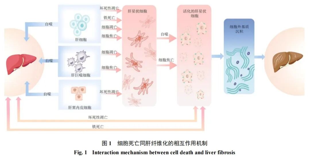 总之,由于肝细胞、LSECs、HSCs、肝巨噬细胞等多种细胞共同参与肝纤维化的形成过程,导致细胞死亡多种方式与肝纤维化的相互作用机制极其复杂(图1),故而需要更多的研究明确中药调控细胞死亡治疗肝纤维化的具体机制。