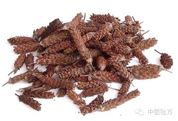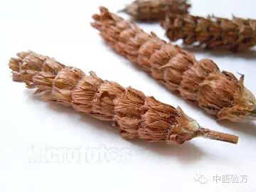 夏枯草为唇形科植物夏枯草的干燥果穗。味辛、苦,性寒。归肝、胆经。 清热泻火,清肝明目,散结消肿。治瘰疬,瘿瘤,乳痈,乳癌,目珠夜痛,羞明流泪,头目眩晕,口眼歪斜,筋骨疼痛,肺结核,急性黄疸型传染性肝炎,血崩,带下。