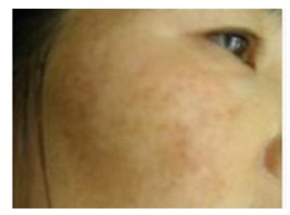 黄褐斑:黄褐斑也称为肝斑和蝴蝶斑,是面部黑变病的一种症状,是由于皮肤黑色素增多而不能有效及时排除,沉积于面部形成的。因黄褐斑对人体除不美观外,无其他不适症状,所以,通常人们仅将之视为一般的损容性皮肤病变。事实上,黄褐斑的出现同身体内部状况息息相关,它的危害也是多方面的。表现为脸面部的色素沉着斑,形状不规则,对称分布,大小不定,颜色深浅不一。主要分布在眼睛周围、面颊部、颧部口周处,影响患者的容貌美,一般没有自觉症状。