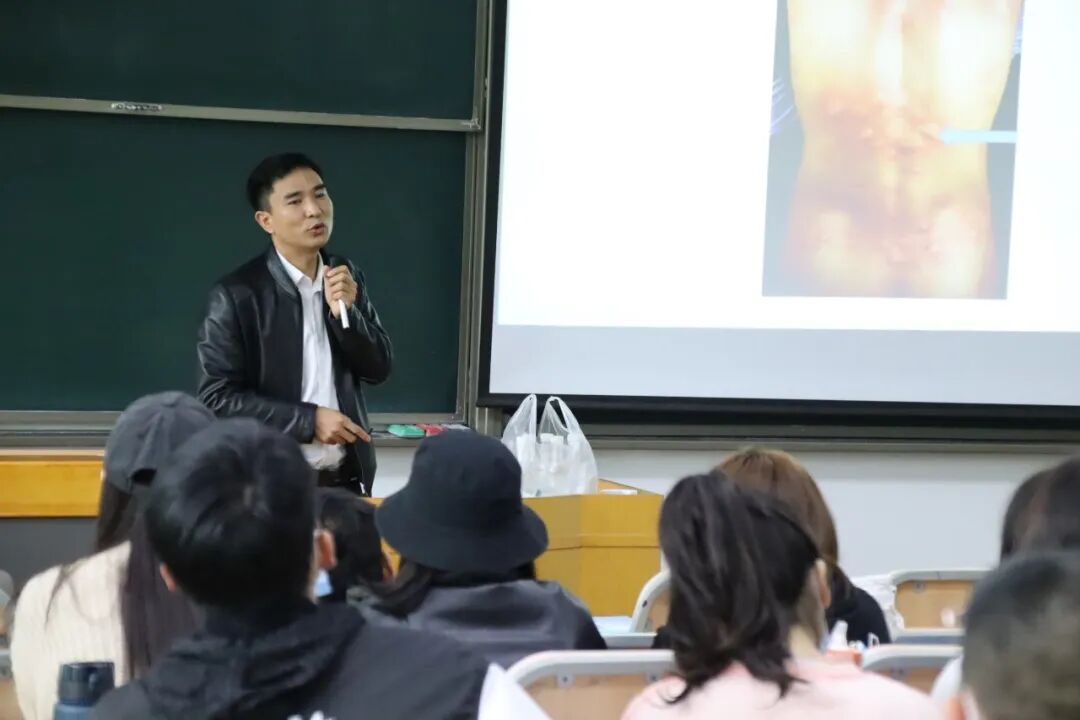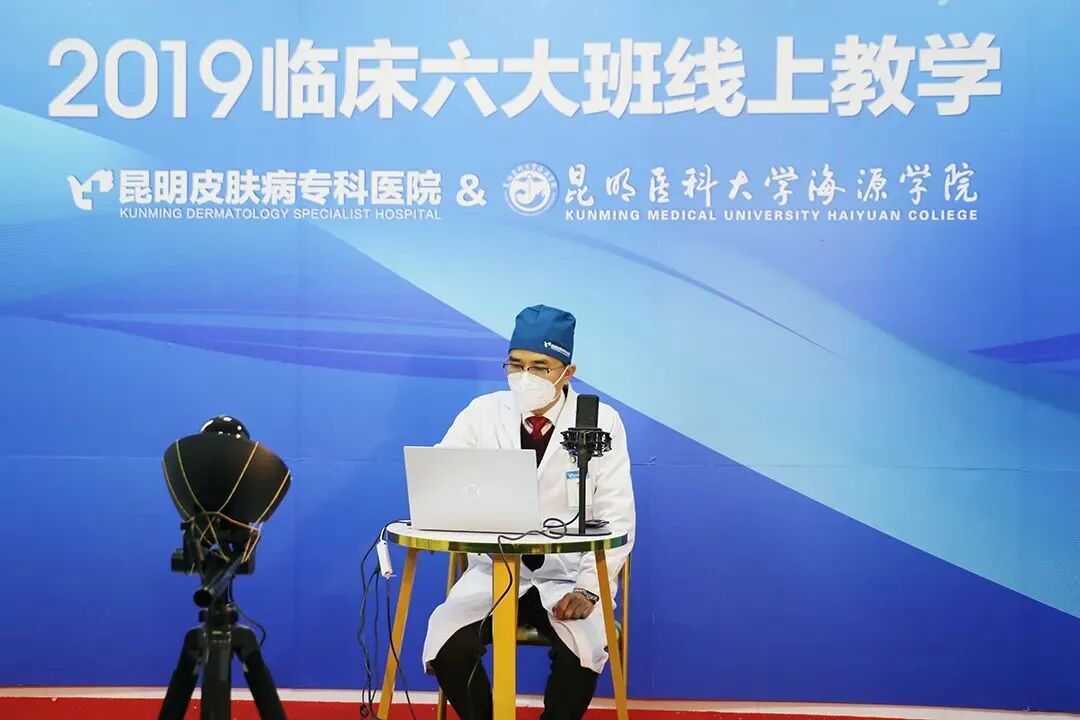 邬主任携医院骨干医师小组走进了昆明医科大学海源学院的课堂,对皮肤病的诊断知识进行了深入的讲解;12月,邬继坤主任为海源学院2019临床六大班的97名学生进行《痤疮调查报告及案例分享》线上授课。