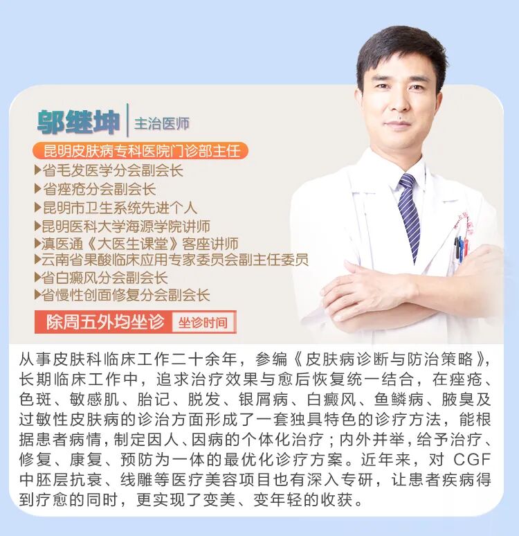 从医二十余年,邬主任长期对颜面损容性皮肤病、变态反应性皮肤病深入研究,追求治疗效果与愈后恢复统一结合,更好地结合新兴治疗技术、前沿诊疗理念,根据患者病情,制定因人、因病的个体化治疗,内外并举,给予治疗、修复、康复、预防为一体的最优化诊疗方案,长期以来形成了一套独具特色的诊疗方法。不仅为广大患者带来精准的诊疗,引领医务工作者临床医疗创新,更将毕生所学带进校园、走向课堂,从未停止对学术的探究。
