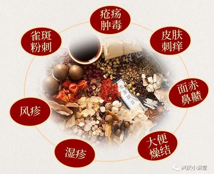 清血解毒,消肿止痒。用于经络不和,湿热血燥引起的风疹,湿疹,皮肤刺痒,雀斑粉刺,面赤鼻齄,疮疡肿毒,脚气疥癣,头目眩晕,大便燥结。